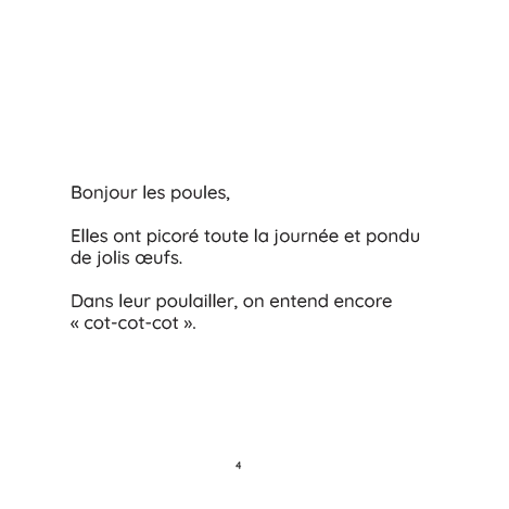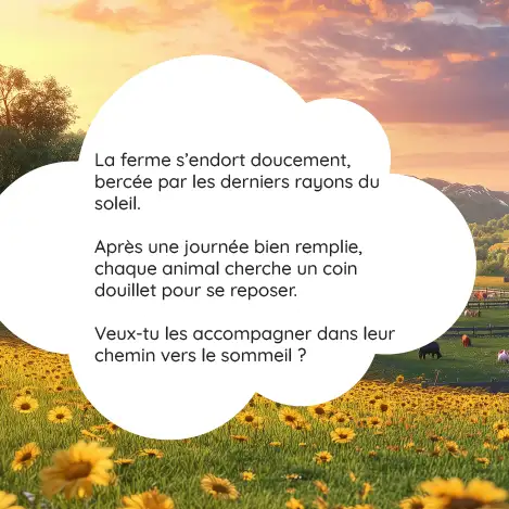 Avec ses 10 animaux de la ferme et ses illustrations pleines de tendresse, ce livre aide à apaiser les enfants, stimule leur imagination et crée un moment complice parent-enfant chaque soir.