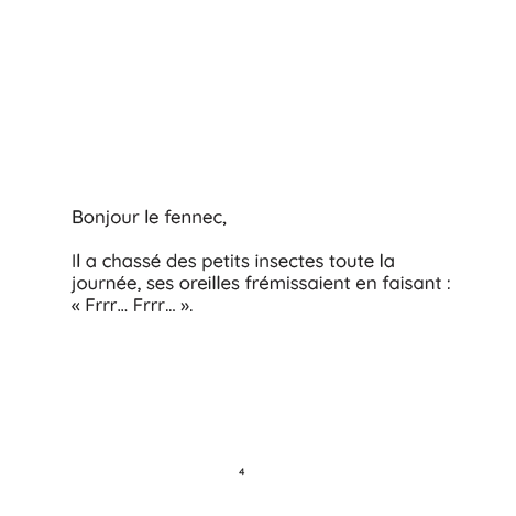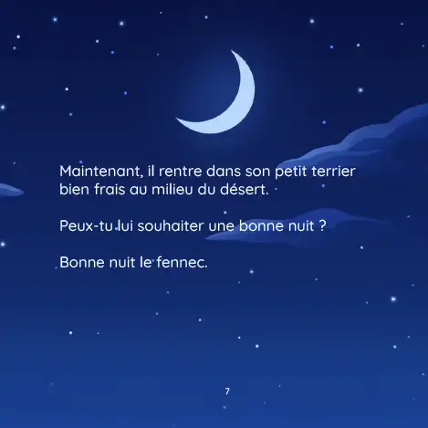 Avec ses 10 animaux du désert (du fennec aux grandes oreilles au suricate travailleur) et ses illustrations pleines de tendresse, ce livre aide à apaiser les enfants, stimule leur imagination et crée un moment complice parent-enfant chaque soir.